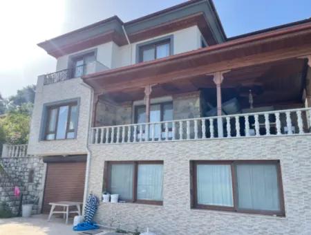 Akyaka Akçapnarda voller Meerblick 556m2 Grundstück 6 Schlafzimmer 2 Wohnzimmer offene Küche 4 Badezimmer 2 en-suite Badezimmer jedes Zimmer hat einen Aufenthalt in jedem Zimmer mit freistehendem Außenpool sowohl Meer Memde Gökova Ebene hat einen Blick auf den Kuss Blick ist nur wenige Gehminuten von den Einkaufsmärkten entfernt Es gibt einen Barbuku Ver Ofen im Garten draußen und es gibt 110 kV Generatoren gehören zur Villa.